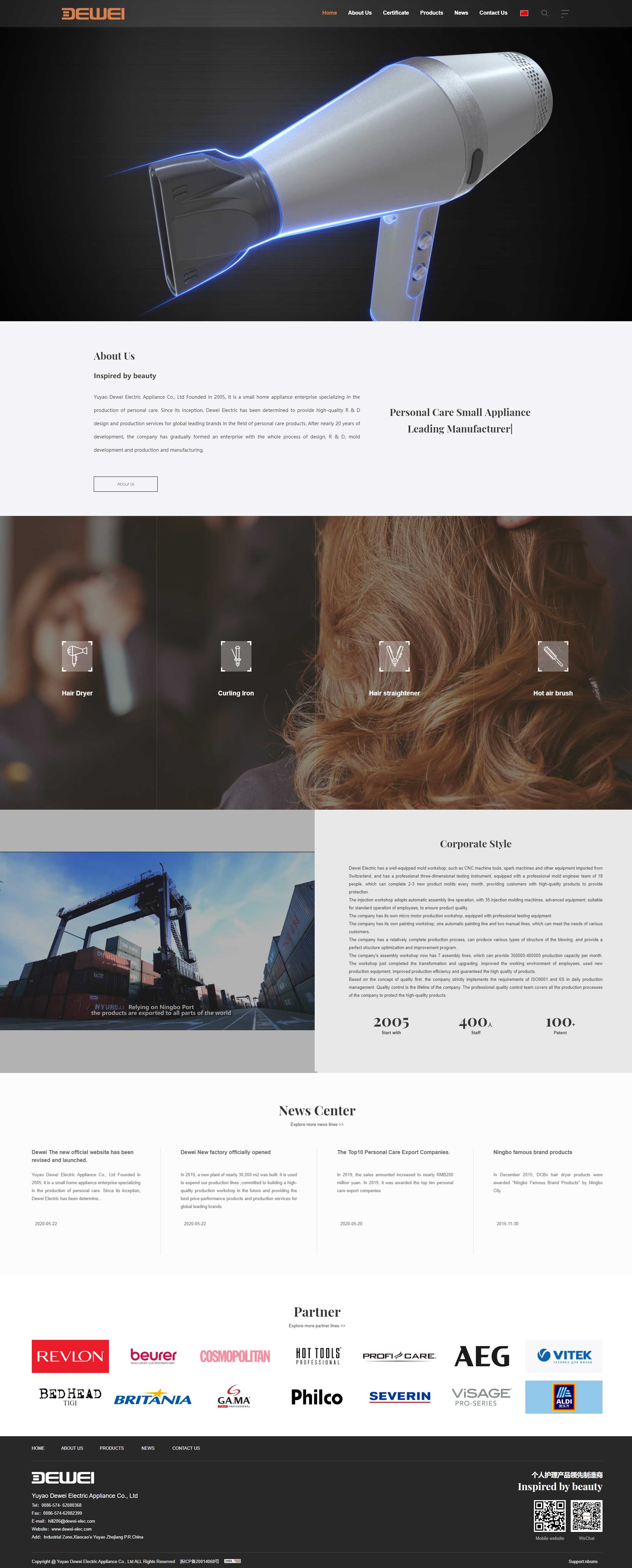 余姚市德威電器有限公司是一家成立于2005年以專業(yè)生產(chǎn)個人護理的小家電企業(yè);從成立之初,德威電器便立志在個人護理產(chǎn)品領(lǐng)域為全球領(lǐng)導(dǎo)品牌提供高質(zhì)量的研發(fā)設(shè)計和生產(chǎn)服務(wù),經(jīng)過近十五年的發(fā)展,公司逐漸形成從設(shè)計研發(fā),模具開發(fā)和生產(chǎn)制造全流程都具備的企業(yè)。