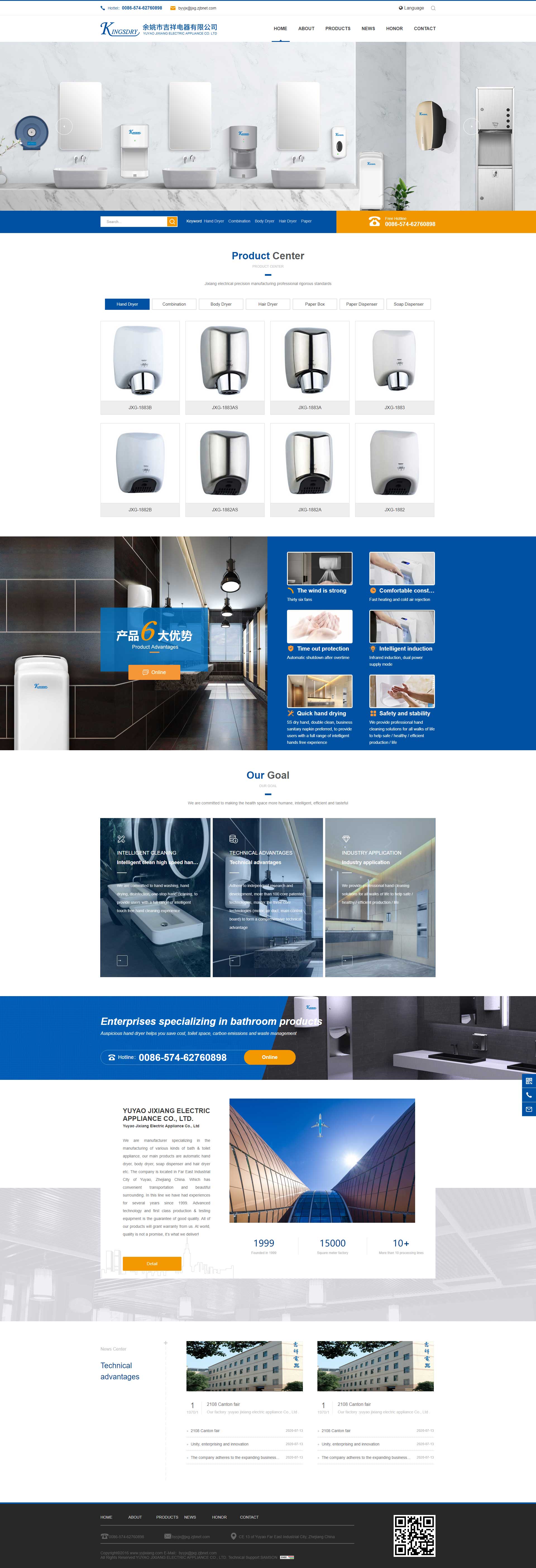 我們是專業(yè)從事衛(wèi)浴產(chǎn)品的企業(yè),我們的主要產(chǎn)品有干手器、干身器、給皂器和吹風機等。公司座落于交通便利周邊環(huán)境美麗的中國浙江余姚遠東工業(yè)城內(nèi)。自1999年以后我們在這一行已有多年的經(jīng)驗。先進的技術,一流的生產(chǎn)及檢測設備,和優(yōu)越的質量保障。歡迎各位朋友的光臨!