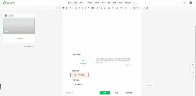 幾年前,一個公眾號想要開通原創(chuàng)功能還需要運營一段時間,保持活躍度,持續(xù)輸出原創(chuàng)文章,微信系統(tǒng)判定之后再給你開通原創(chuàng)功能。現(xiàn)在原創(chuàng)功能已經(jīng)完全開放,只要登錄微信公眾后臺,編輯圖文頁面下方,就可以找到“原創(chuàng)申明”的入口,無需開通。