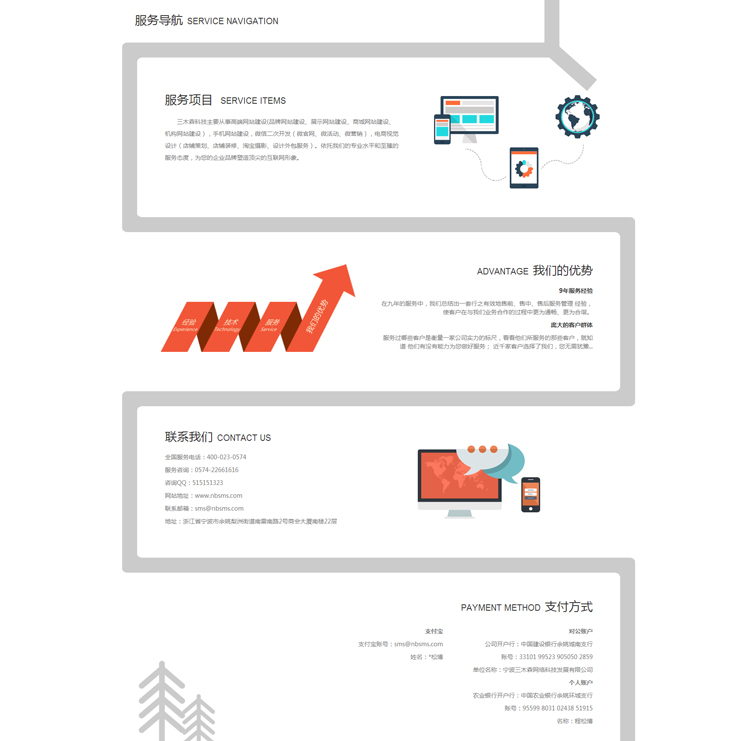 公司新網(wǎng)站的目標是致力于體現(xiàn)現(xiàn)代信息科技的重要作用;同時,版面設計清新簡潔,網(wǎng)站構架簡明大方,網(wǎng)站內(nèi)容豐富詳細,便于客戶快速有效的查詢,清晰地了解到公司的最新動態(tài)和企業(yè)活動,為各界人士關注寧波三木森網(wǎng)絡科技發(fā)展有限公司提供一個全方面的網(wǎng)絡平臺。